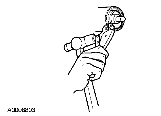 6. Install a Nm (inch lbs.) torque wrench on the nut and record the torque necessary to maintain rotation of the pinion through several revolutions.