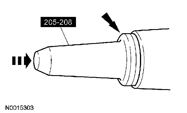CAUTION: If the rear axle drive pinion seal becomes misaligned during installation, remove the seal and install a new seal.