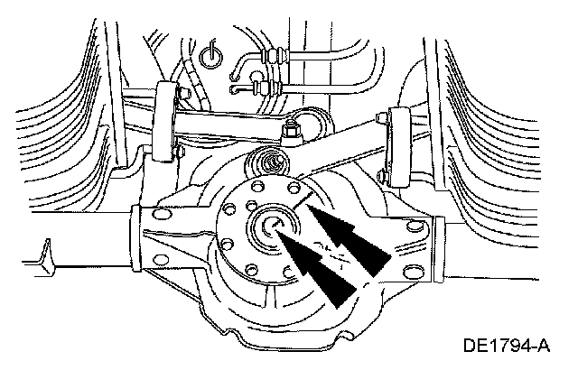 ^ Rotate the pinion occasionally to make sure the differential pinion bearings seat correctly. Take frequent differential pinion bearing preload readings by rotating the pinion with a Nm (inch lbs.) torque wrench.