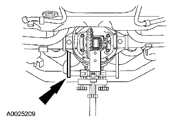Support the rear axle housing with a suitable jack.
