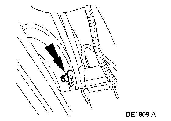 ^ Remove the retainer nut from the bellcrank stud.