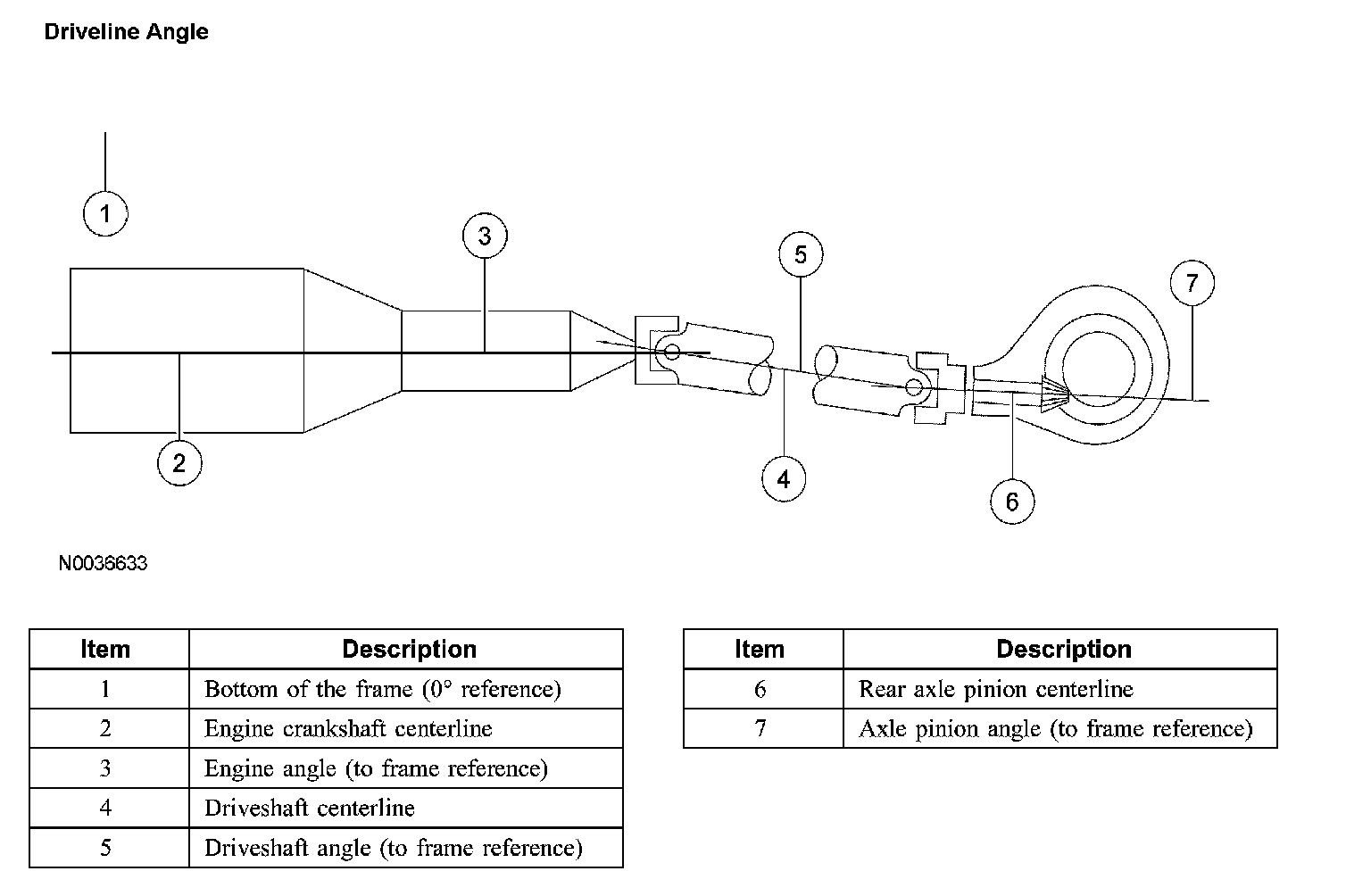 Driveline angularity is the angular relationship between the engine crankshaft, the driveshaft and the rear axle pinion. Factors determining driveline angularity include ride height, rear spring and engine mounts.