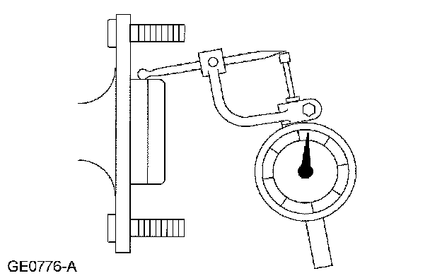 2. Rotate the hub or flange one full turn and note the maximum and minimum readings. The difference between the maximum and minimum readings will be the total face runout. The runout must not exceed 0.127 mm (0.005 inch).