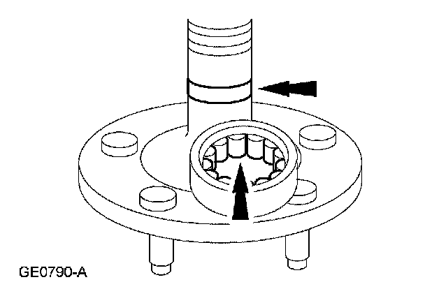 If the wheel bearing is damaged, the roller surface on the axle shaft may also be damaged. Install a new axle shaft if any damage is detected.