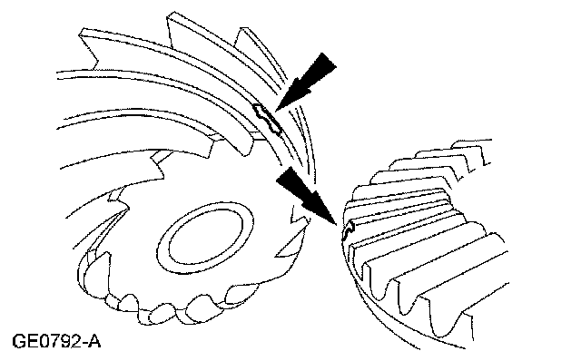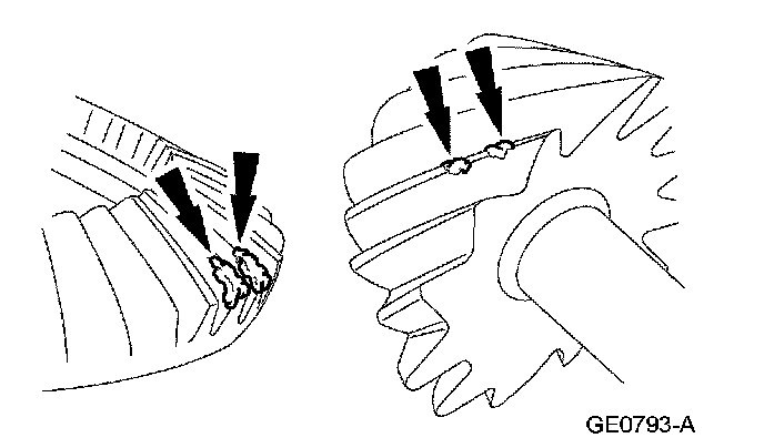 To check the ring gear and pinion, remove as much lubricant as possible from the gears with clean solvent. Wipe the gears dry or blow them dry with compressed air. Look for scored or damaged teeth. Also look for cracks or other damage.
