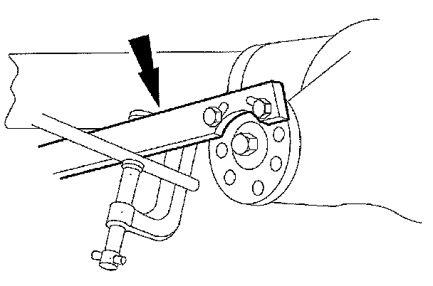^ Clamp a rigid bar or pipe to the tool. Clamp the other end of the bar or pipe to the frame or a body member in order to prevent movement of the rear axle pinion flange.