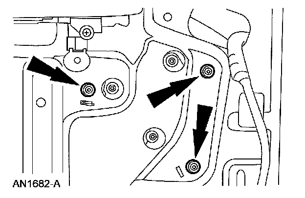 5. Remove the 2 rear door window regulator nuts.
