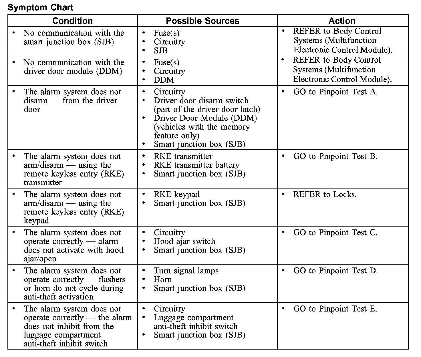 Symptom Chart: