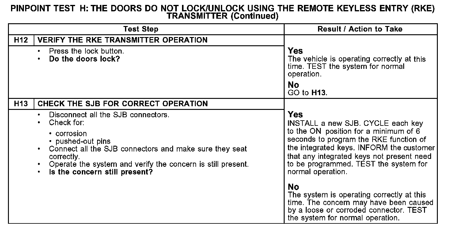 Test H: The Doors Do Not Lock/Unlock Using the Remote Keyless Entry (RKE) Transmitter