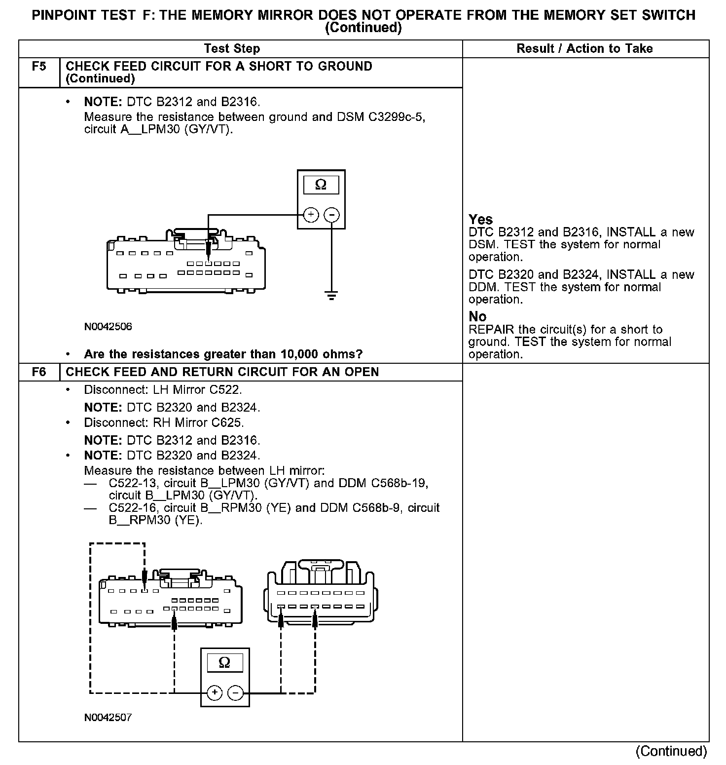 The DSM receives input on the position of the LH exterior mirror from circuits VPM36 (BN/YE), B_LPM30 (GY/VT), B_RPM30 (YE), VPM35 (YE/BU) and 894 (GY) and from the RH exterior mirror from circuits VPM37 (BU/OG), VPM38 (BN/GN), 891 (GY/RD), A_RPM30 (YE) and A_LPM30 (GY/VT).