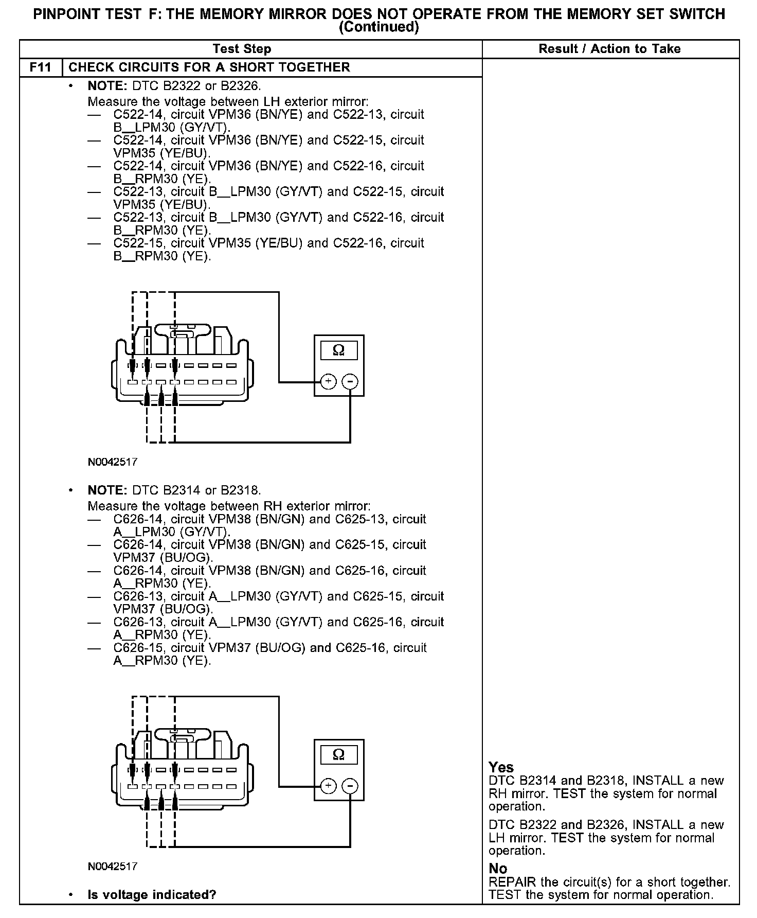 - An open, short to voltage or short to ground in circuits: CPS15 (VT/WH), CPS16 (YE), CPS14 (GY/VT), CPS55 (YE), VPM36 (BN/YE), A_LPM30 (GY/VT), B_LPM30 (GY/VT), VPM35 (YE/BU), VPM37 (BU/OG), A_RPM30 (YE), B_RPM30 (YE) or VPM38 (BN/GN)