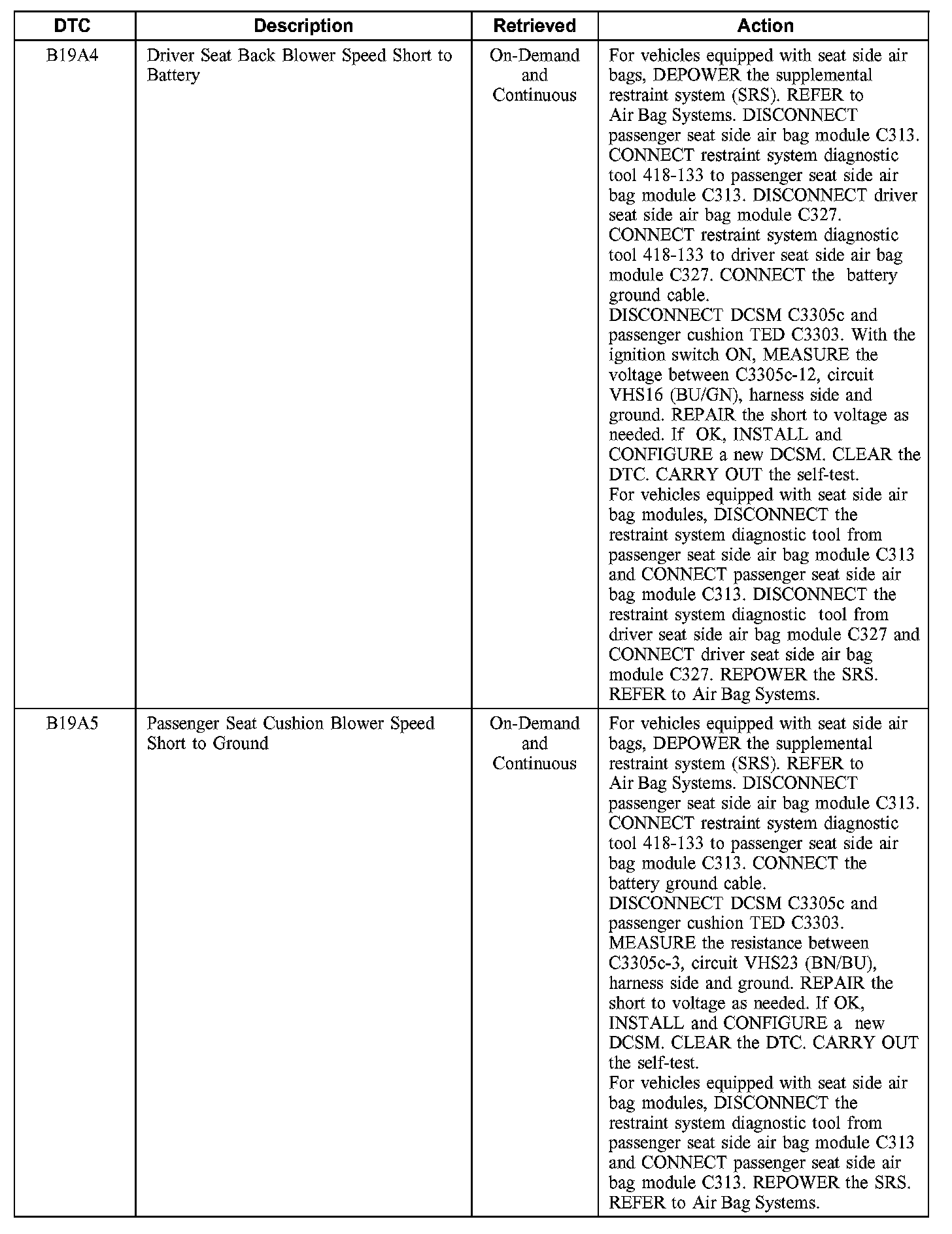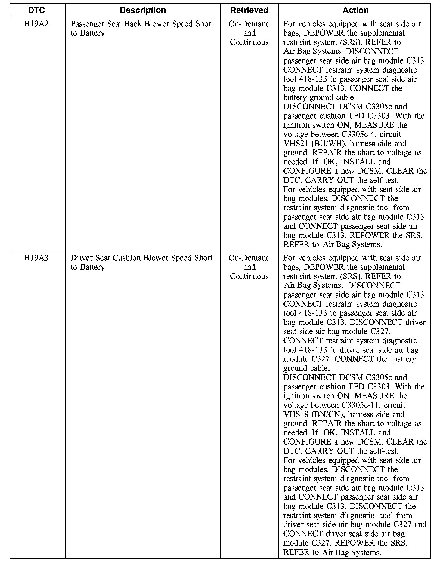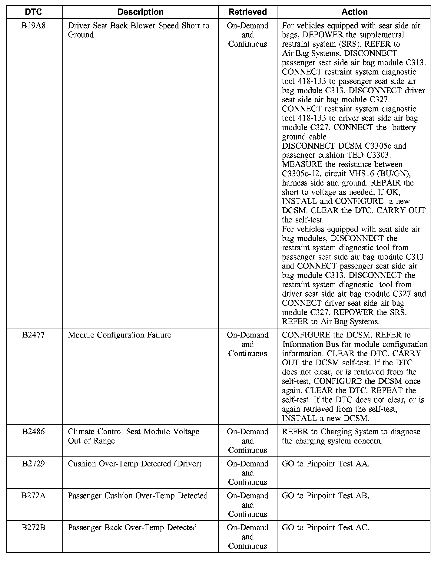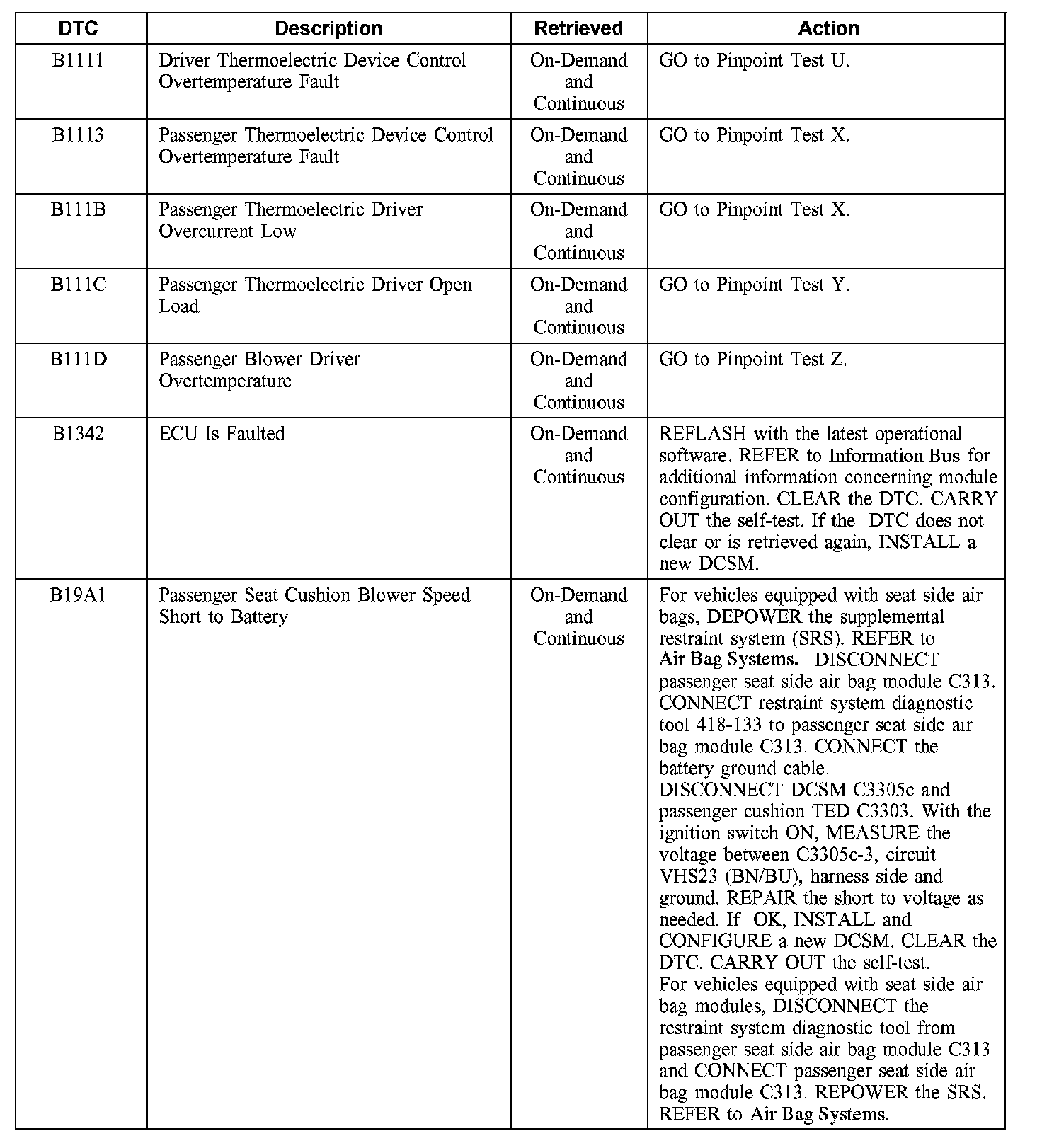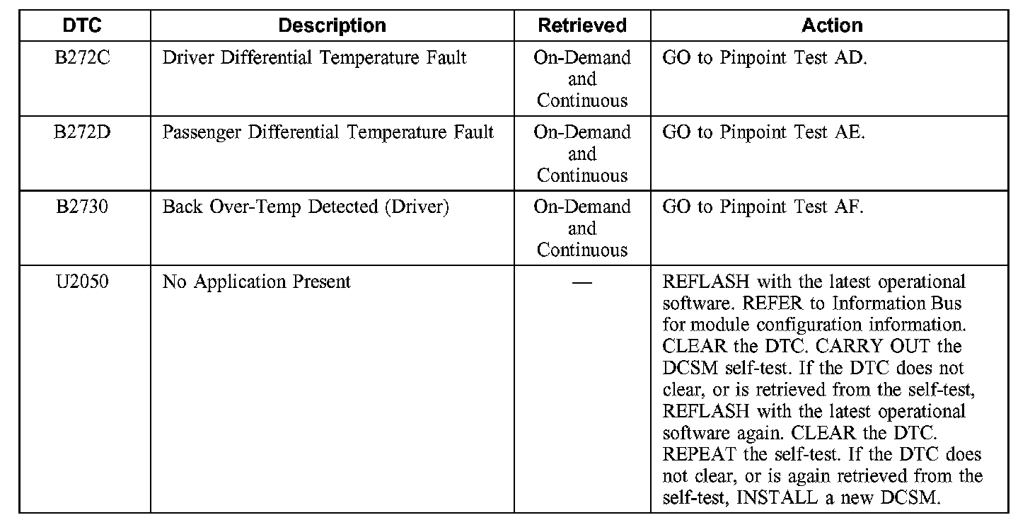 Dual Climate Controlled Seat Module (DCSM) Diagnostic Trouble Code (DTC) Index