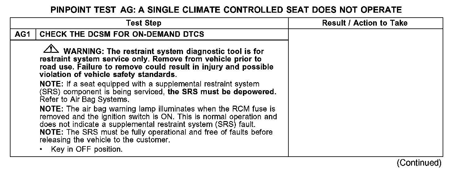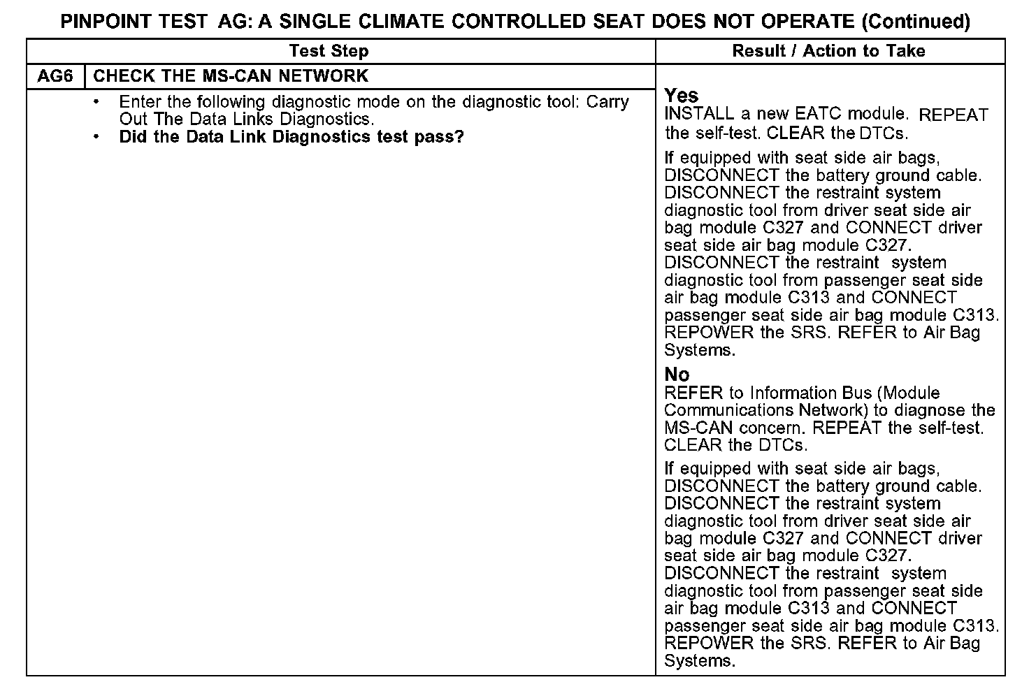 PINPOINT TEST AG: A SINGLE CLIMATE CONTROLLED SEAT DOES NOT OPERATE