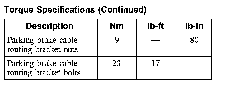 Parking Brake System: Specifications