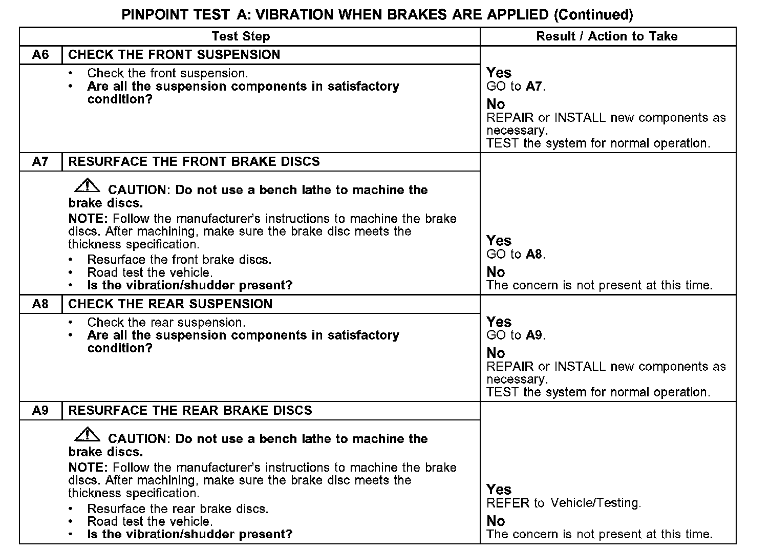 Pinpoint Test A: Vibration When Brakes Are AppliedNormal Operation