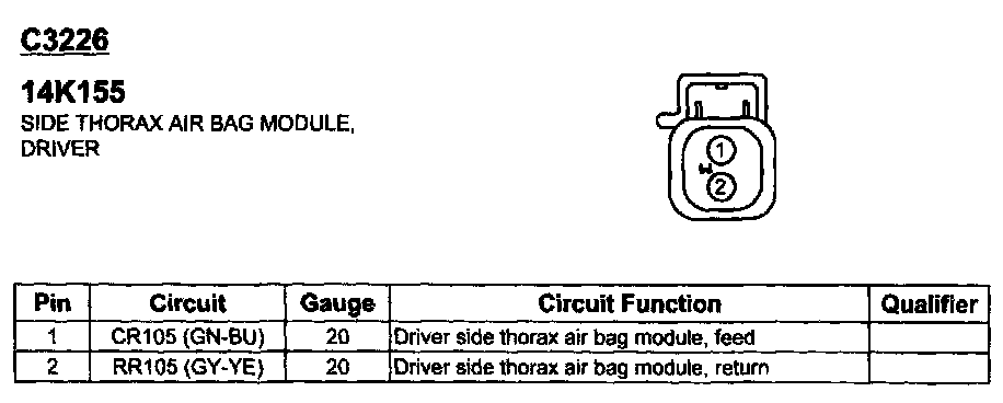 Side Thorax Air Bag Module, Driver