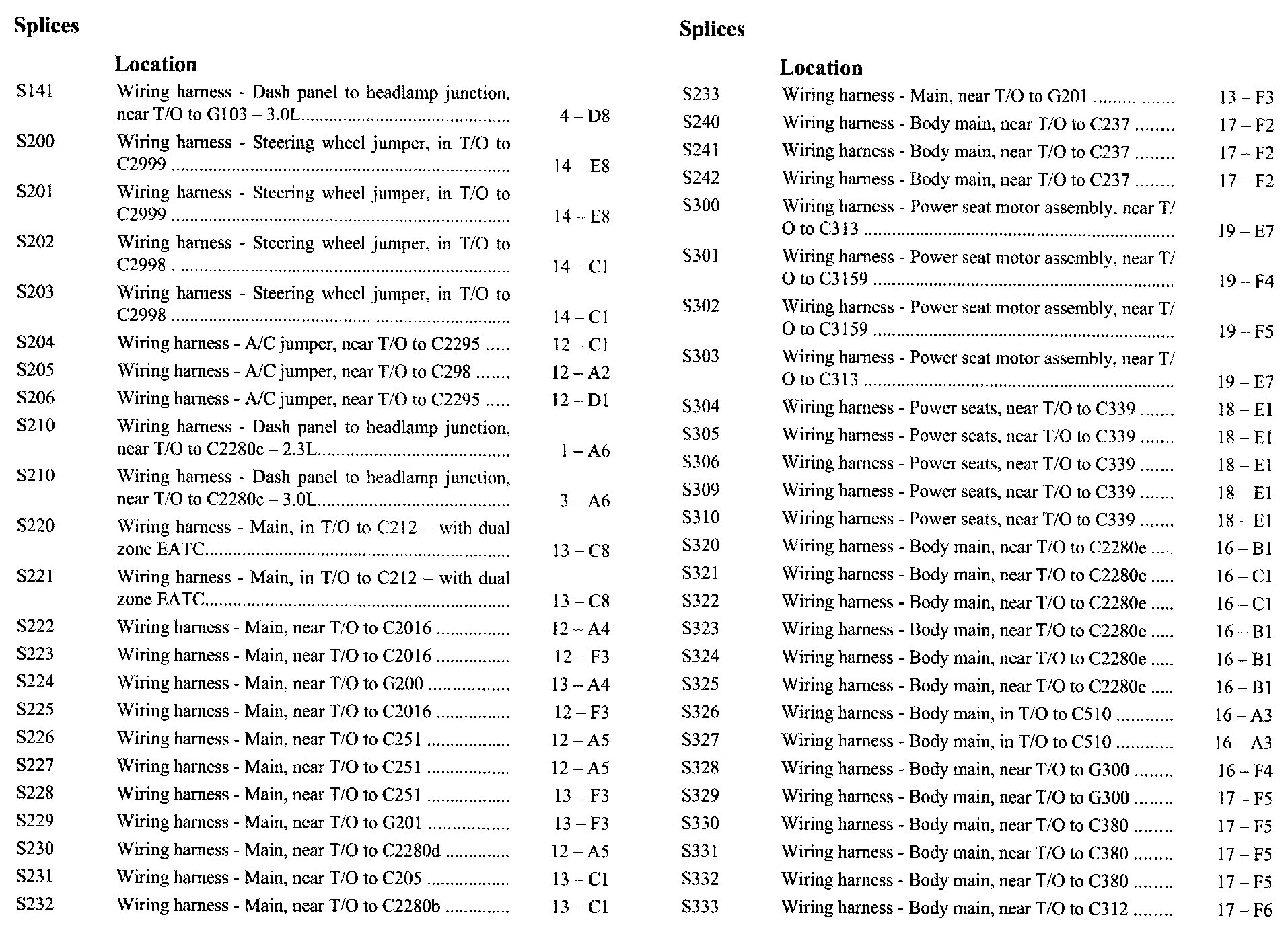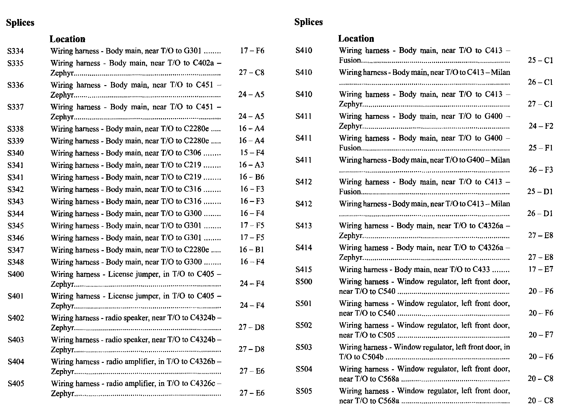 If a link on the Splices Location Index to a View is not provided, that means that the Splices and/or View in question does NOT apply to the vehicle model selected.