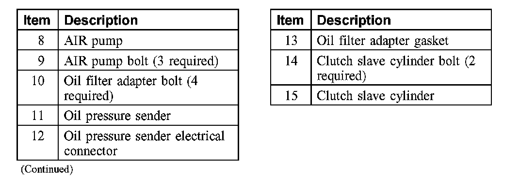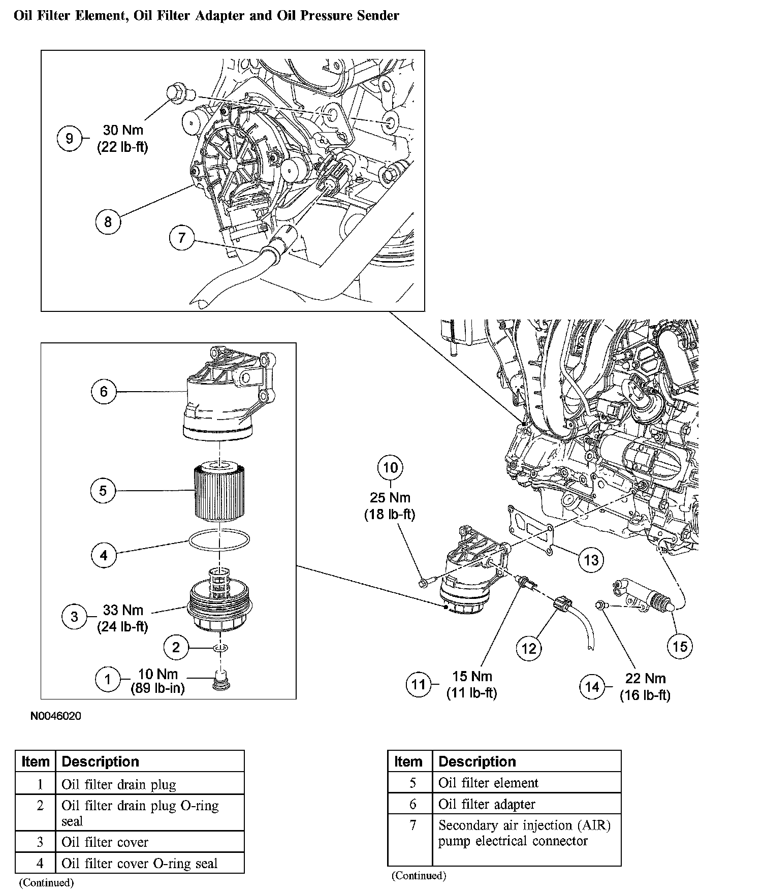 Engine Lubrication Components - Exploded View Oil Filter Element, Oil Filter Adapter and Oil Pressure Sender: