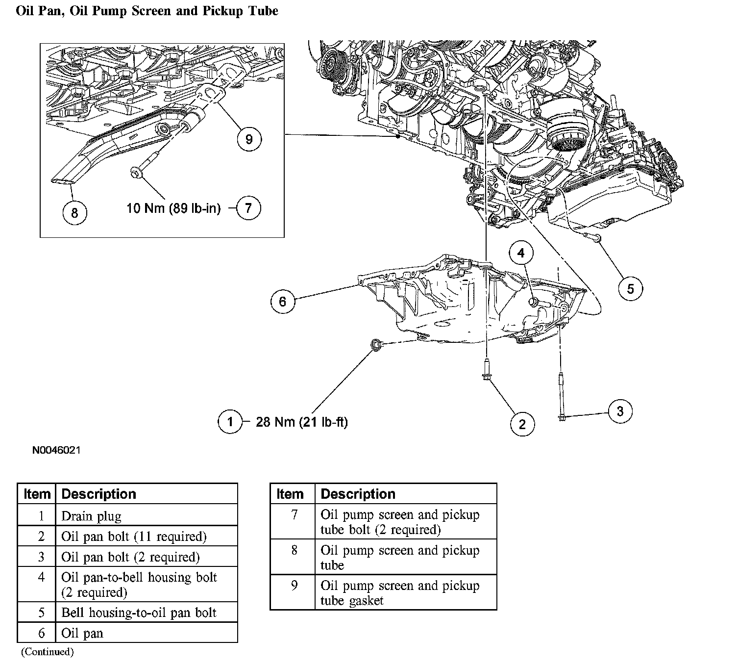 Oil Pan, Oil Pump Screen and Pickup Tube: