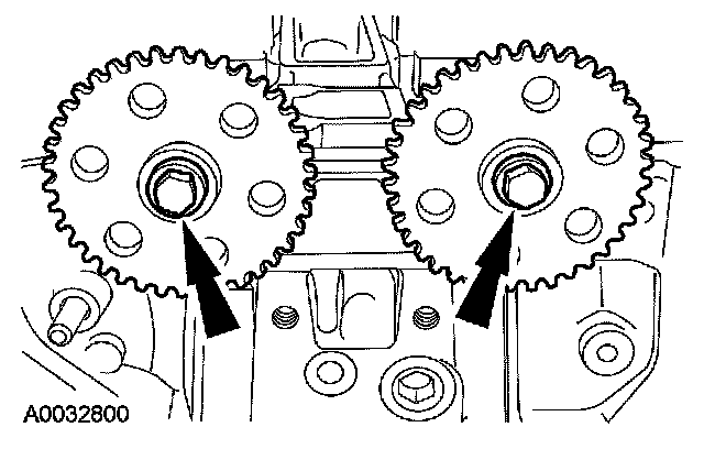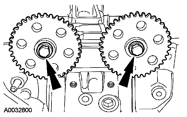 53. Install the camshaft sprockets and the bolts. Do not tighten the bolts at this time.