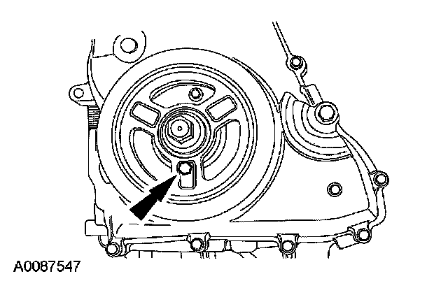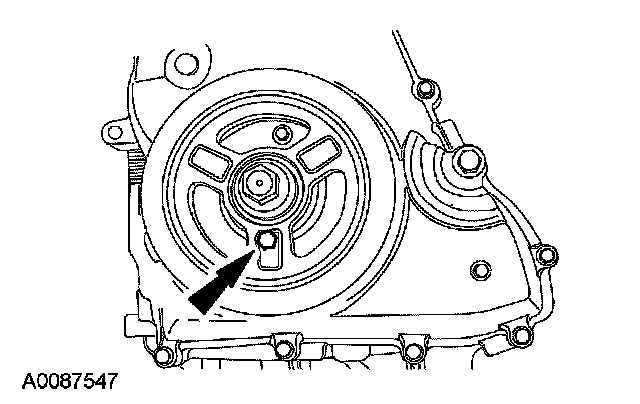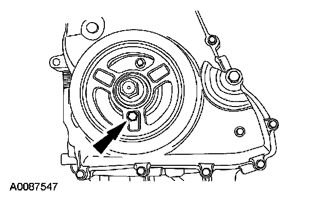 Using the 6 mm (0.23 inch) x 18 mm (0.7 inch) bolt, check the position of the crankshaft pulley.