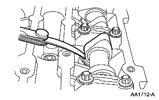 NOTE: Before removing the camshafts, measure the clearance of each valve at base circle, with the lobe pointed away from the tappet. Failure to measure all clearances prior to removing the camshafts will necessitate repeated removal and installation and wasted labor time.