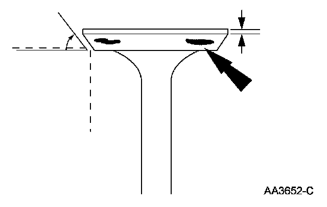 2. Inspect for abnormalities on the valve face and seat. Install a new cylinder head assembly if abnormalities are found.