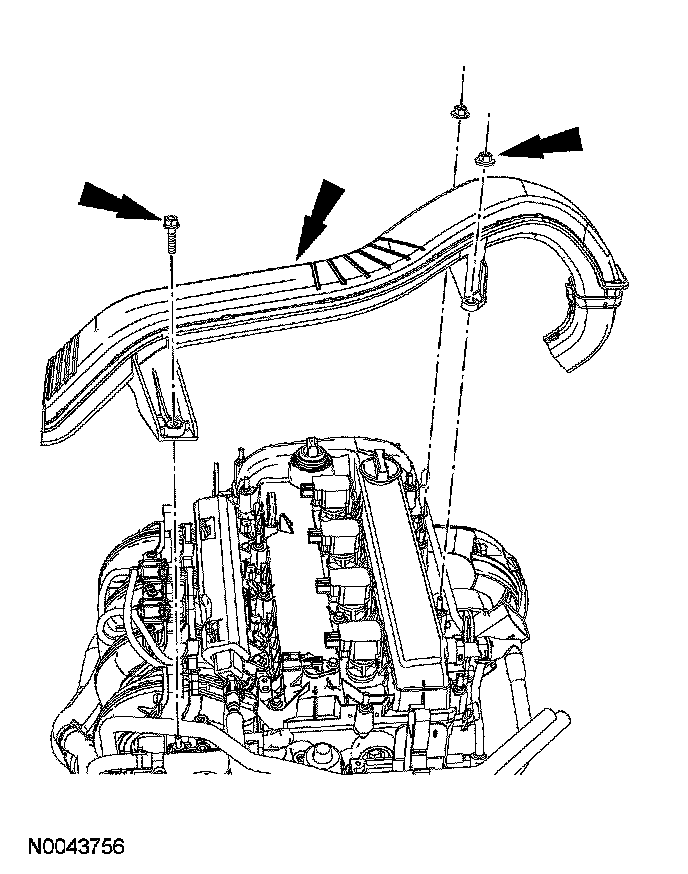 11. Install the heated oxygen sensor (HO2S) and catalyst monitor sensors (CMS). For additional information, refer to Computers and Control Systems.