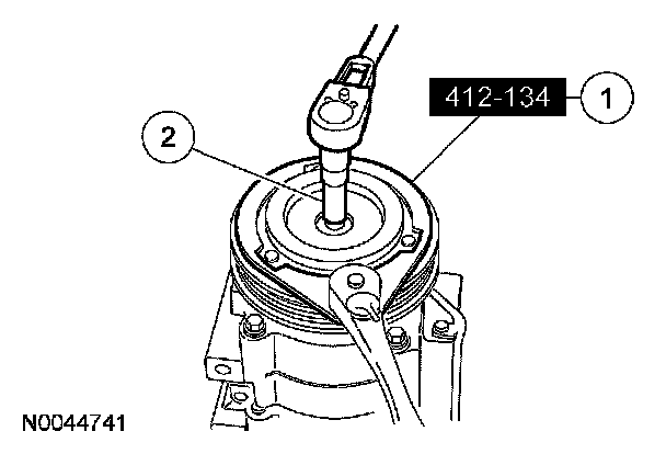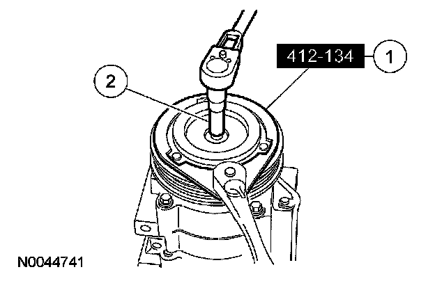 6. NOTE: The A/C clutch pulley is a tight fit on the A/C compressor head. It must be correctly aligned during installation.