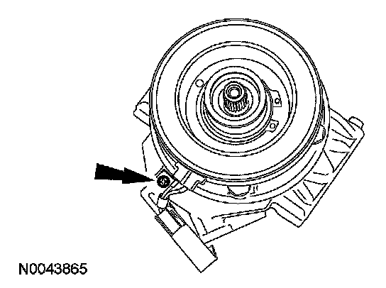 7. Remove the A/C clutch field coil electrical connector clip screw.
