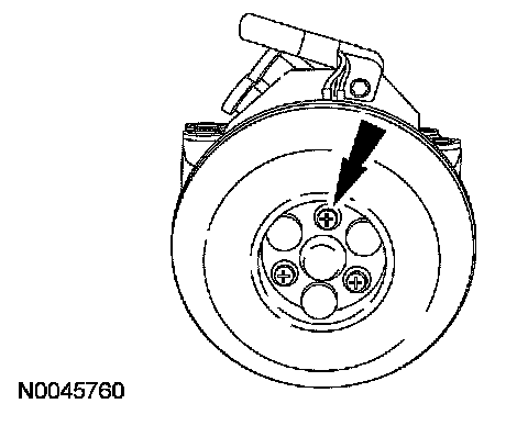 12. Measure and adjust the clutch air gap by removing or adding A/C clutch hub spacers.