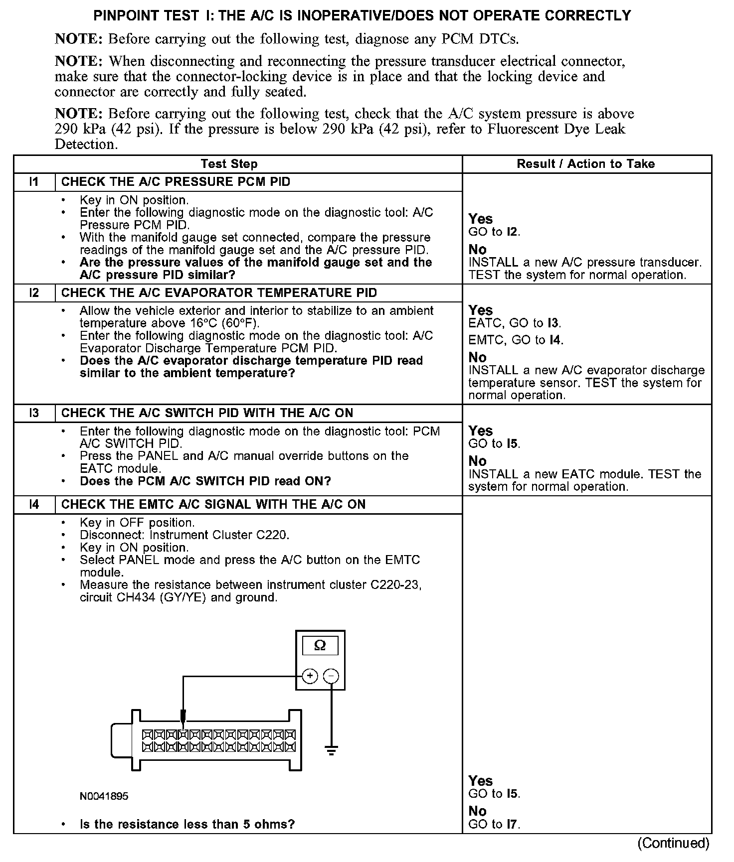 Test I: The A/C Is Inoperative/Does Not Operate Correctly