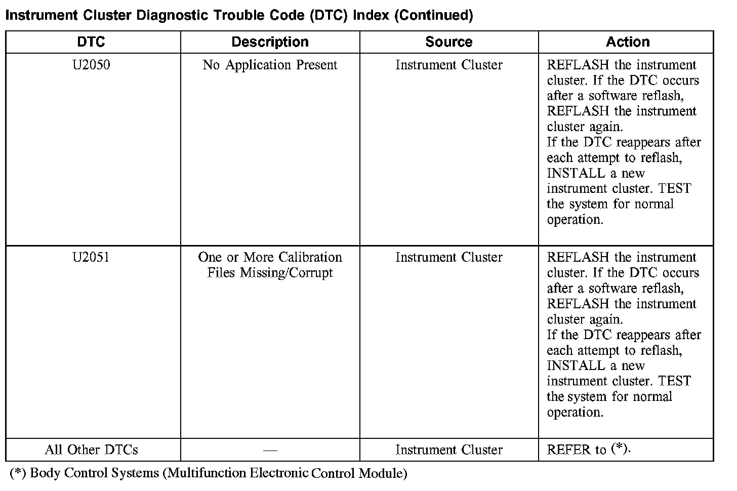 Instrument Cluster Diagnostic Trouble Code (DTC) Index