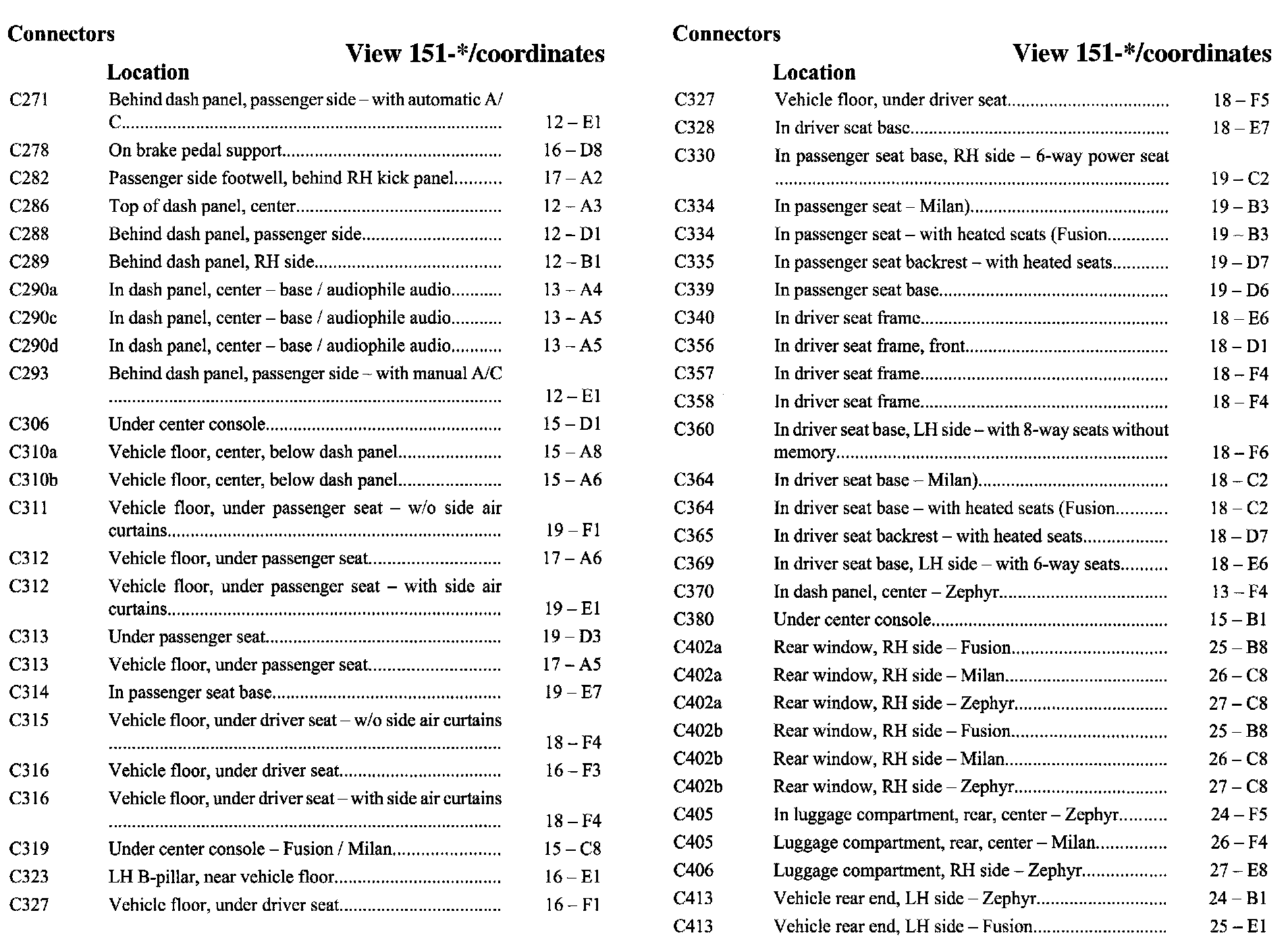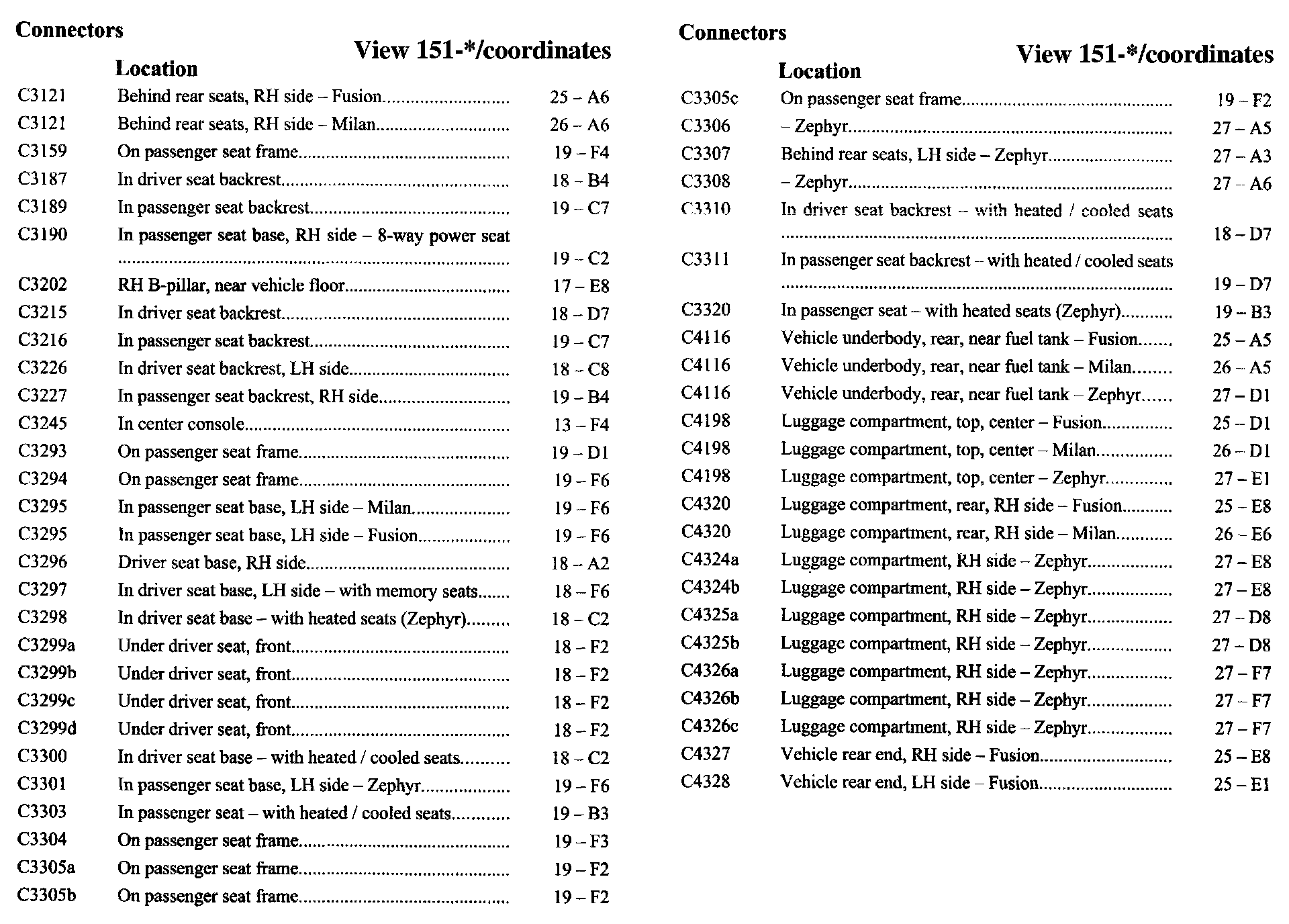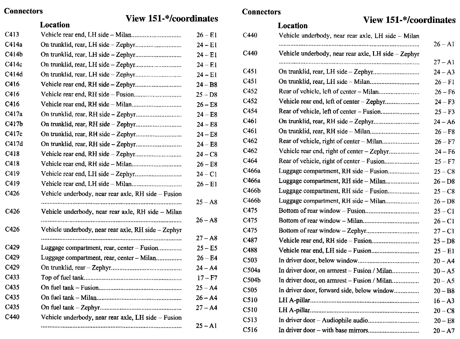 PLEASE NOTE: If a link on the Connector Location Index to a View is not provided, that means that the Connector and/or View in question does NOT apply to the vehicle model selected.