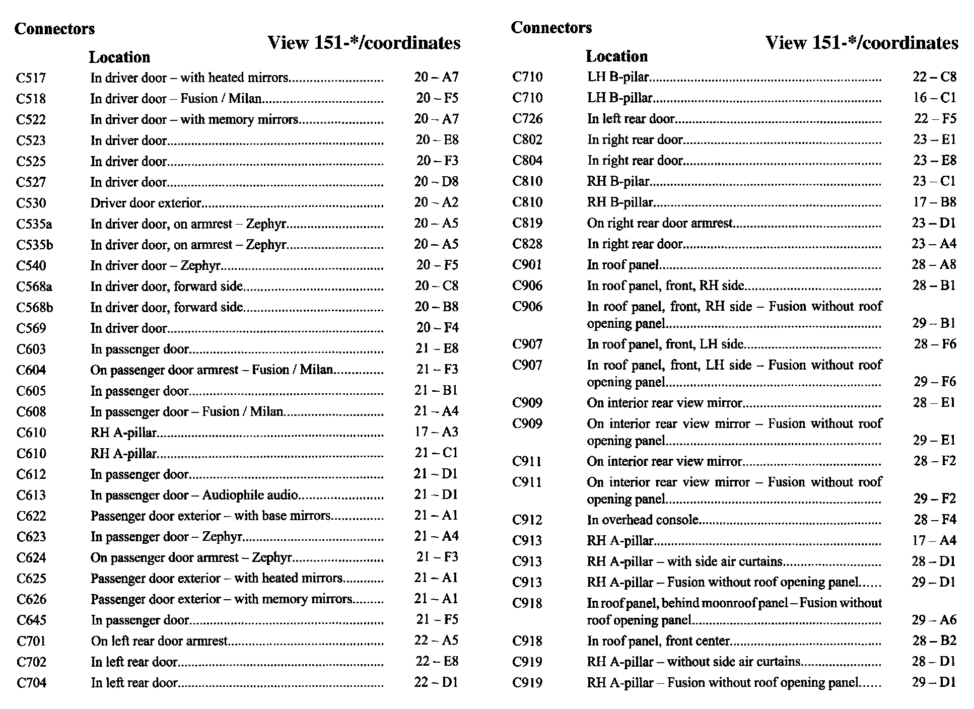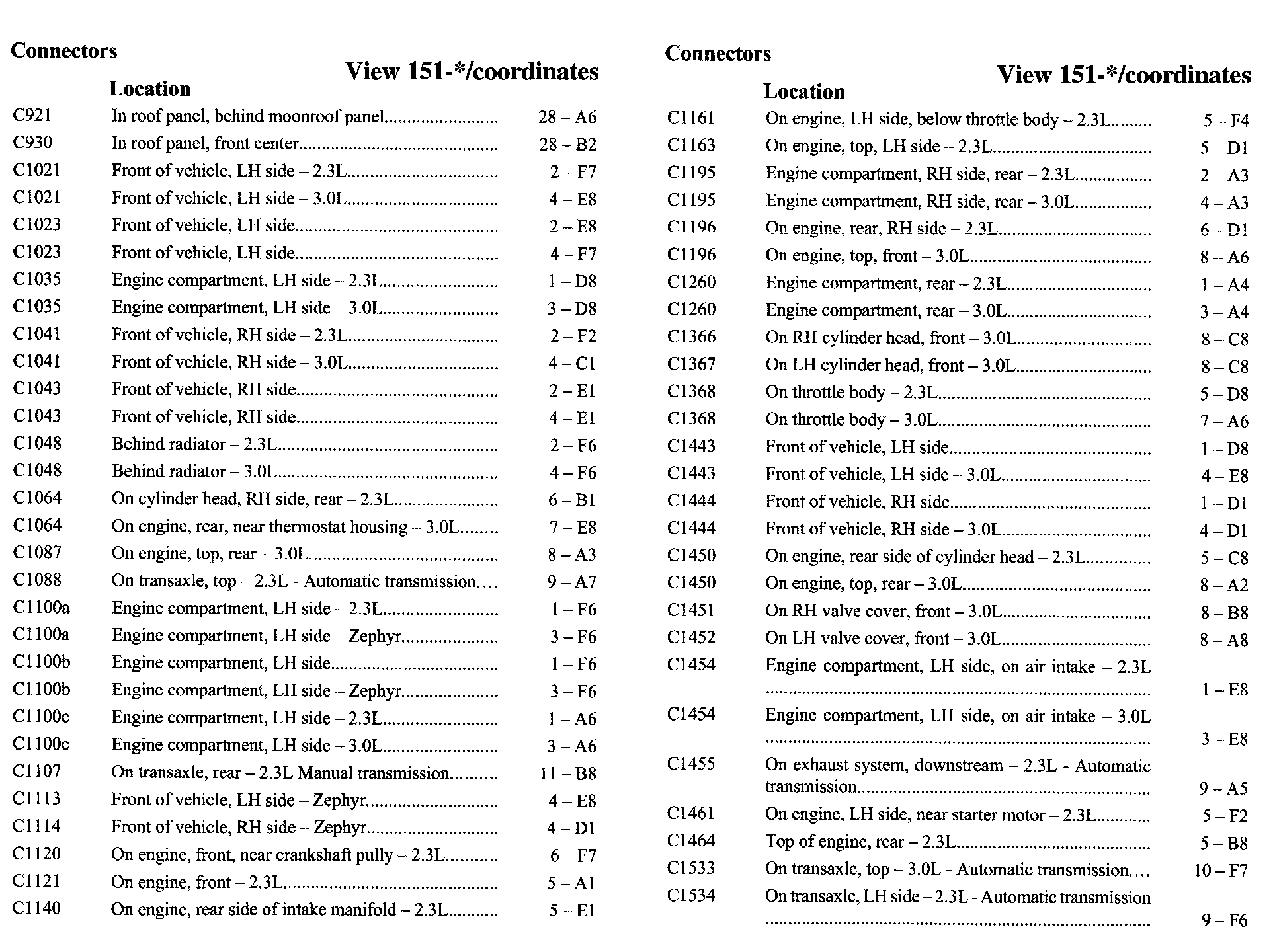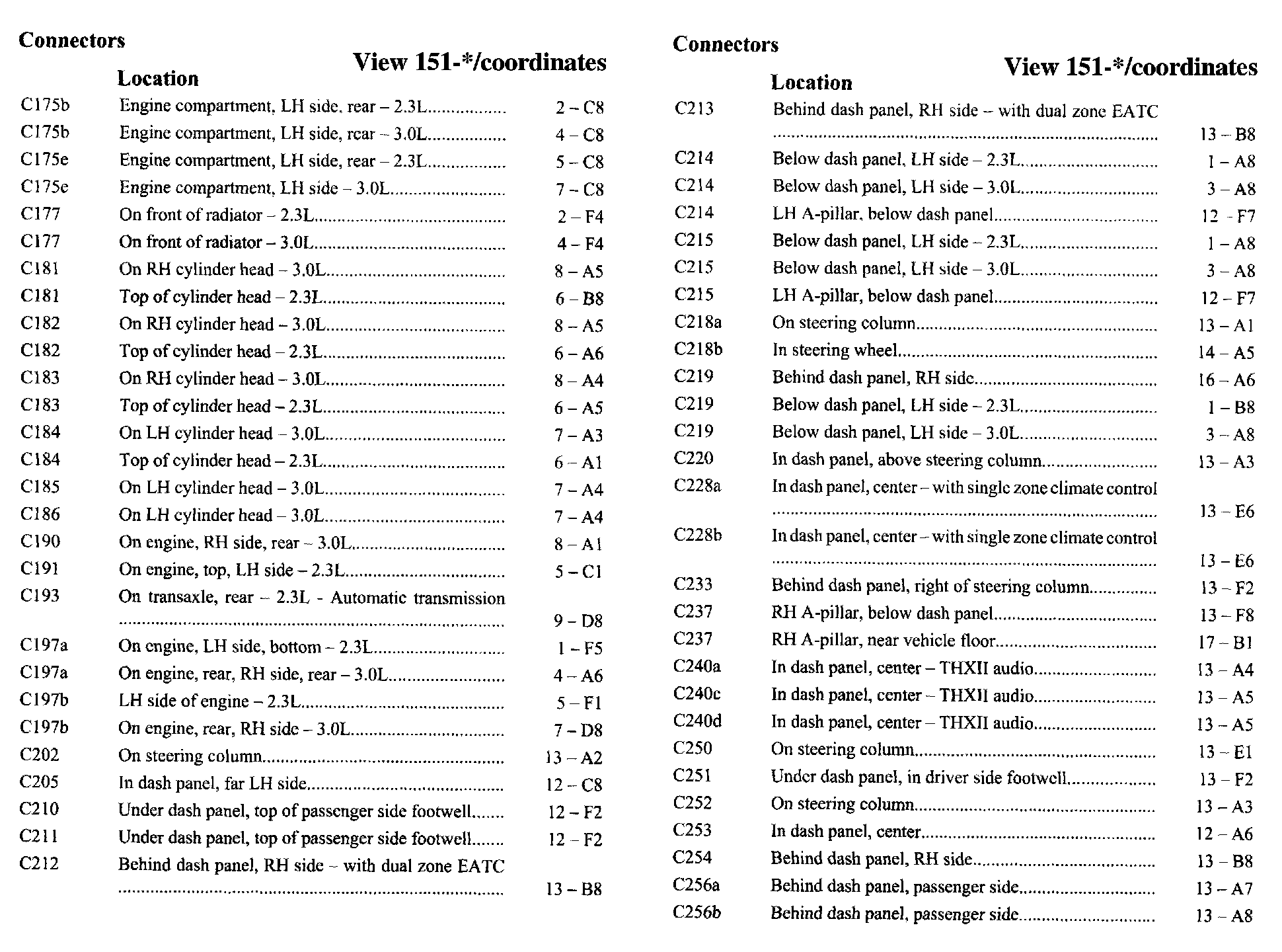 PLEASE NOTE: If a link on the Connector Location Index to a View is not provided, that means that the Connector and/or View in question does NOT apply to the vehicle model selected.