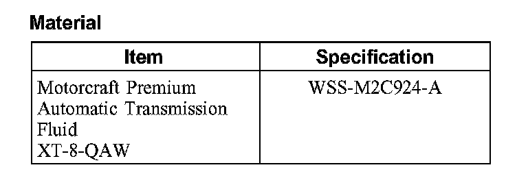 CAUTION: MERCON, MERCON V, MERCON SP, Motorcraft Premium Automatic Transmission Fluid and Motorcraft Continuously Variable Chain Type Transmission Fluid are not interchangeable transmission fluids. The use of any fluid other than what is recommended for this transmission will cause transmission damage. Refer to Specifications for the correct fluid.