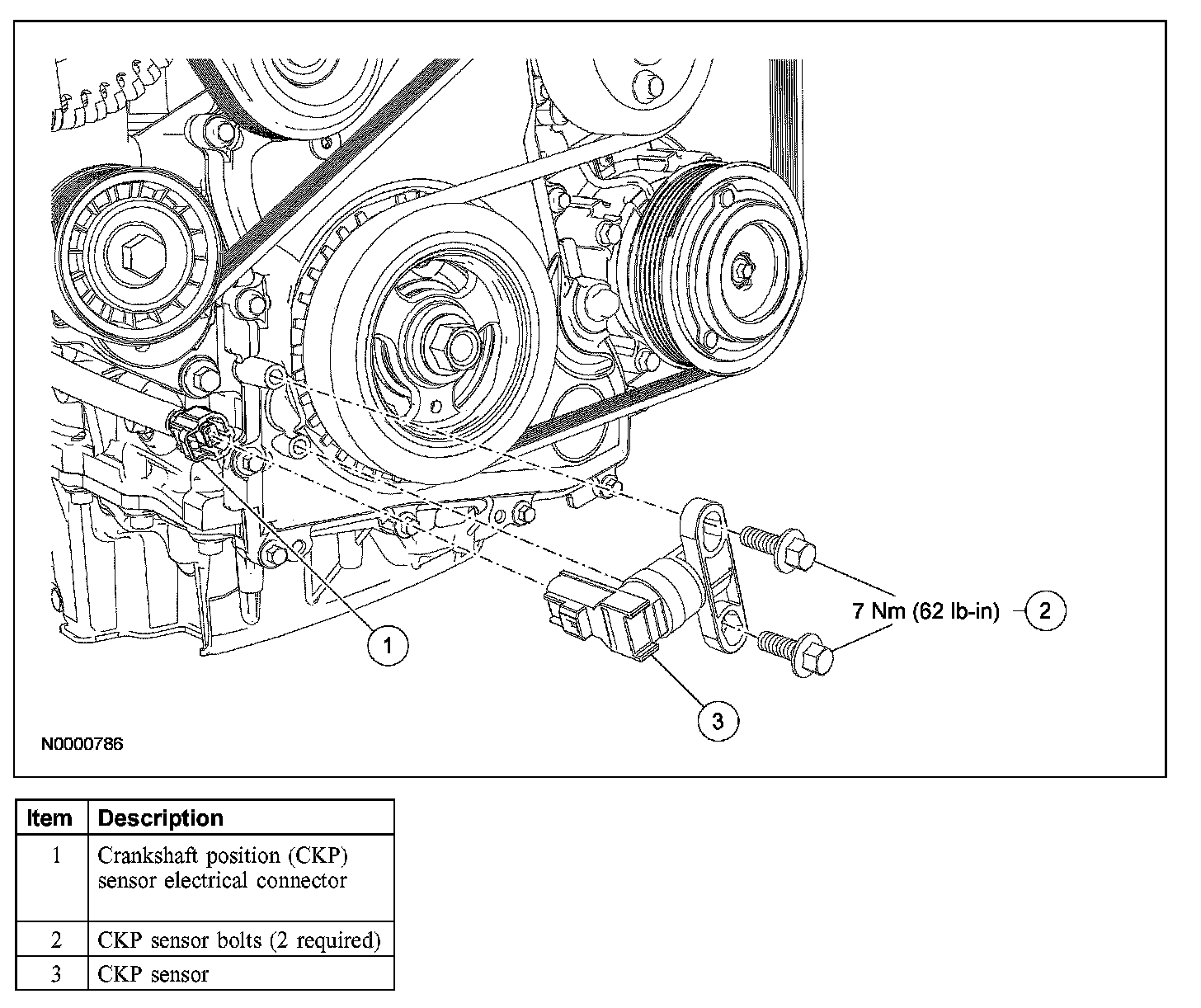 - Tighten the 2 CKP bolts to 7 Nm (62 lb-in).