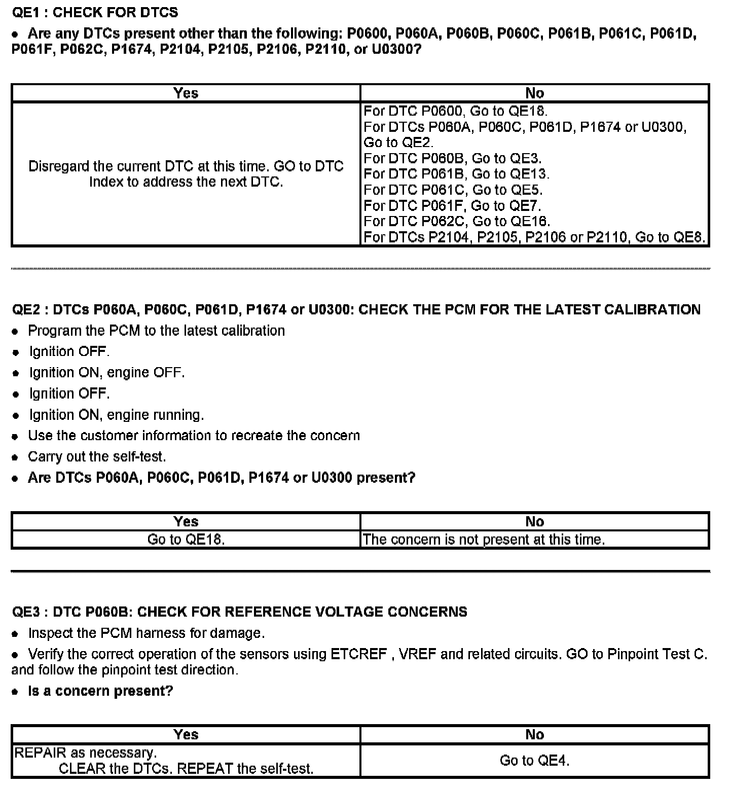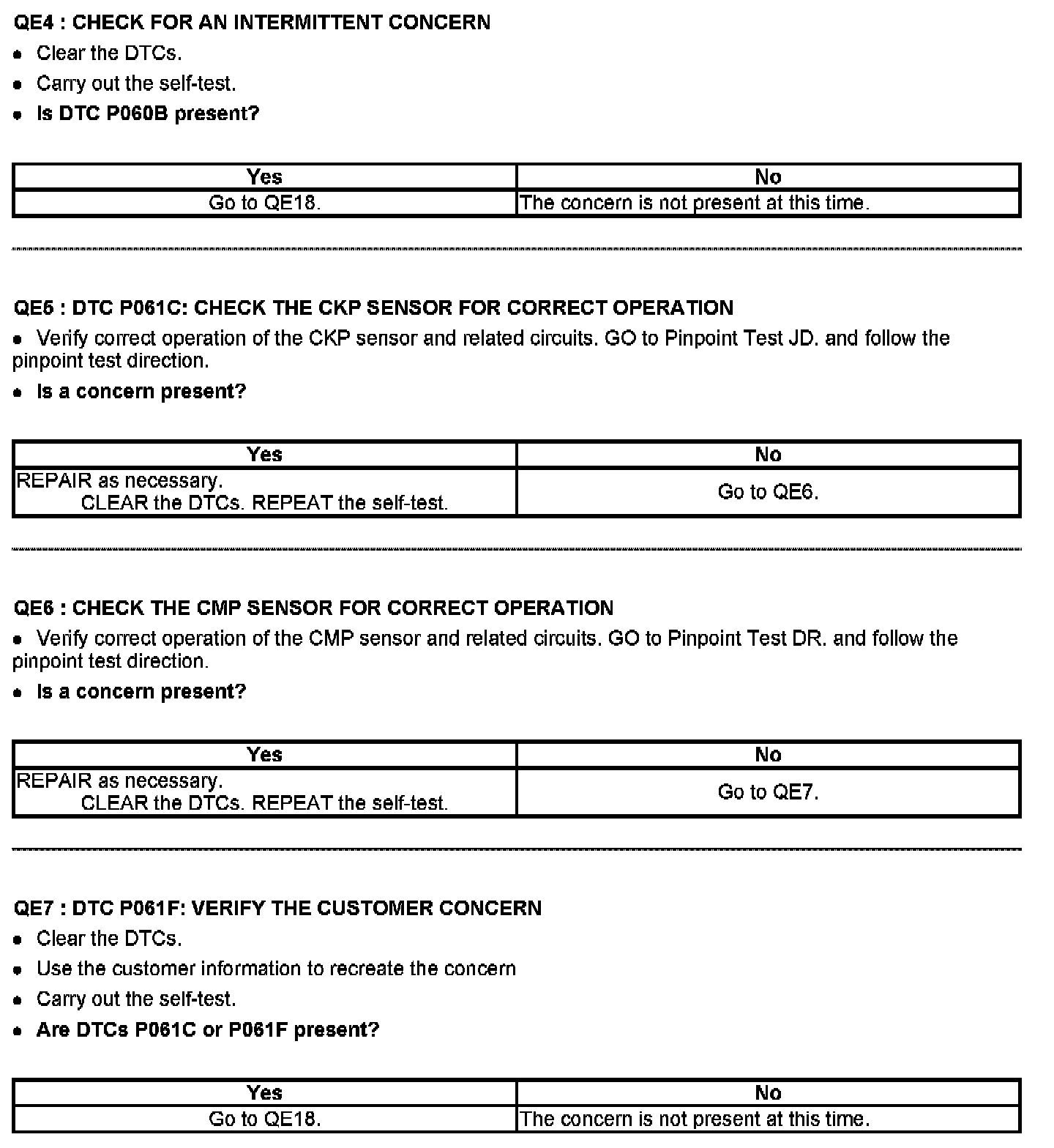This pinpoint test is intended to diagnose the informational powertrain control module (PCM) DTCs.