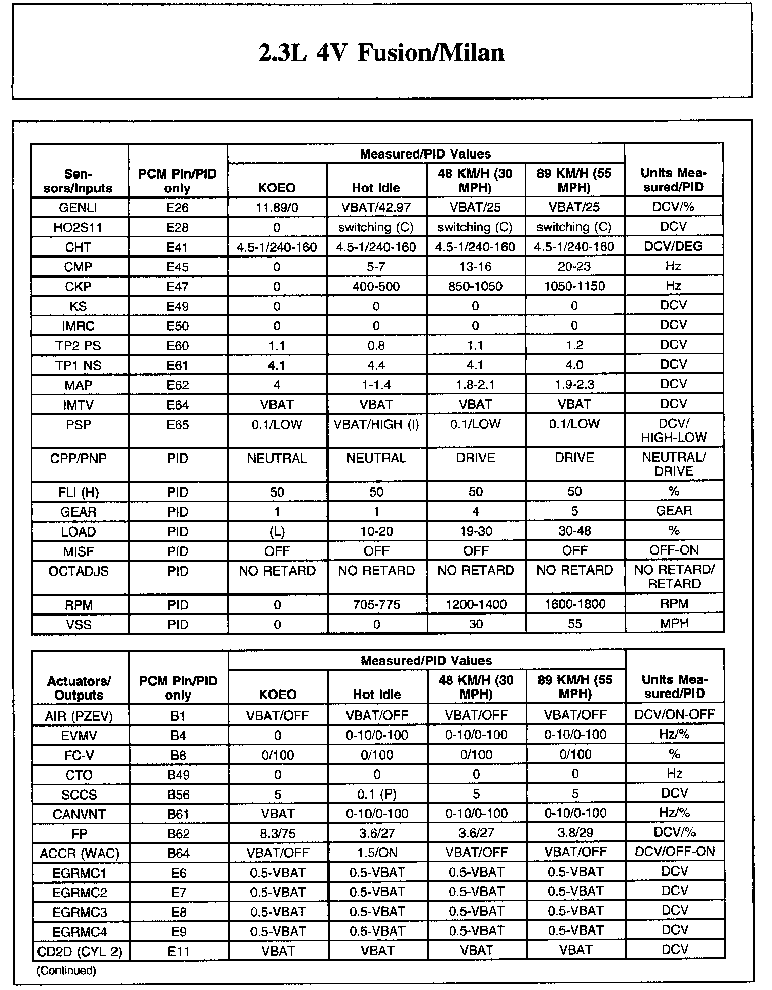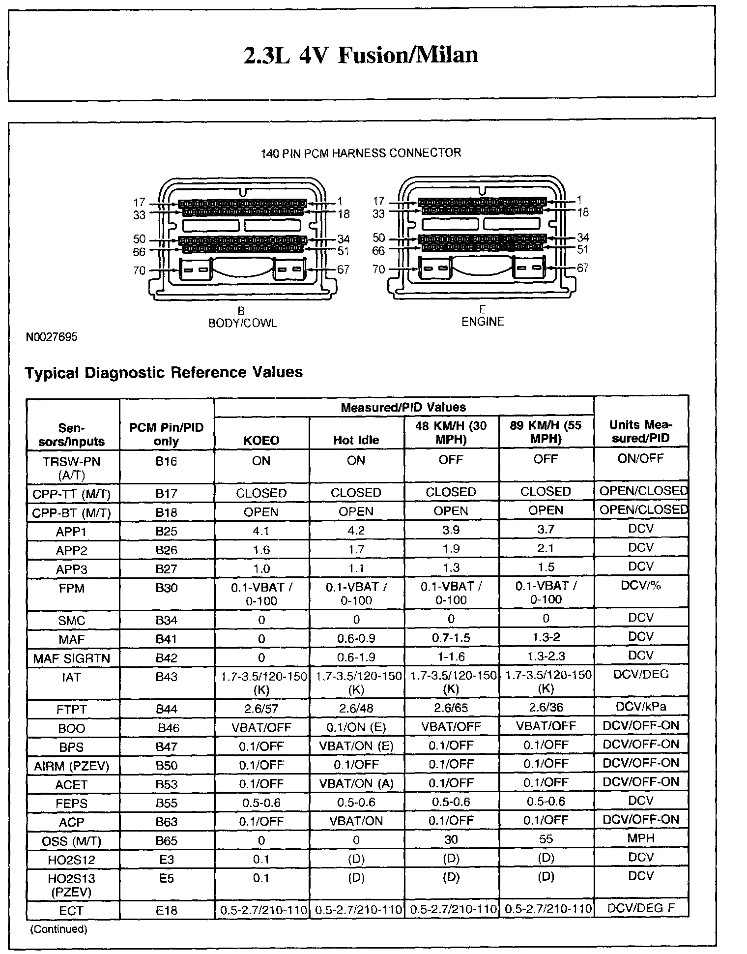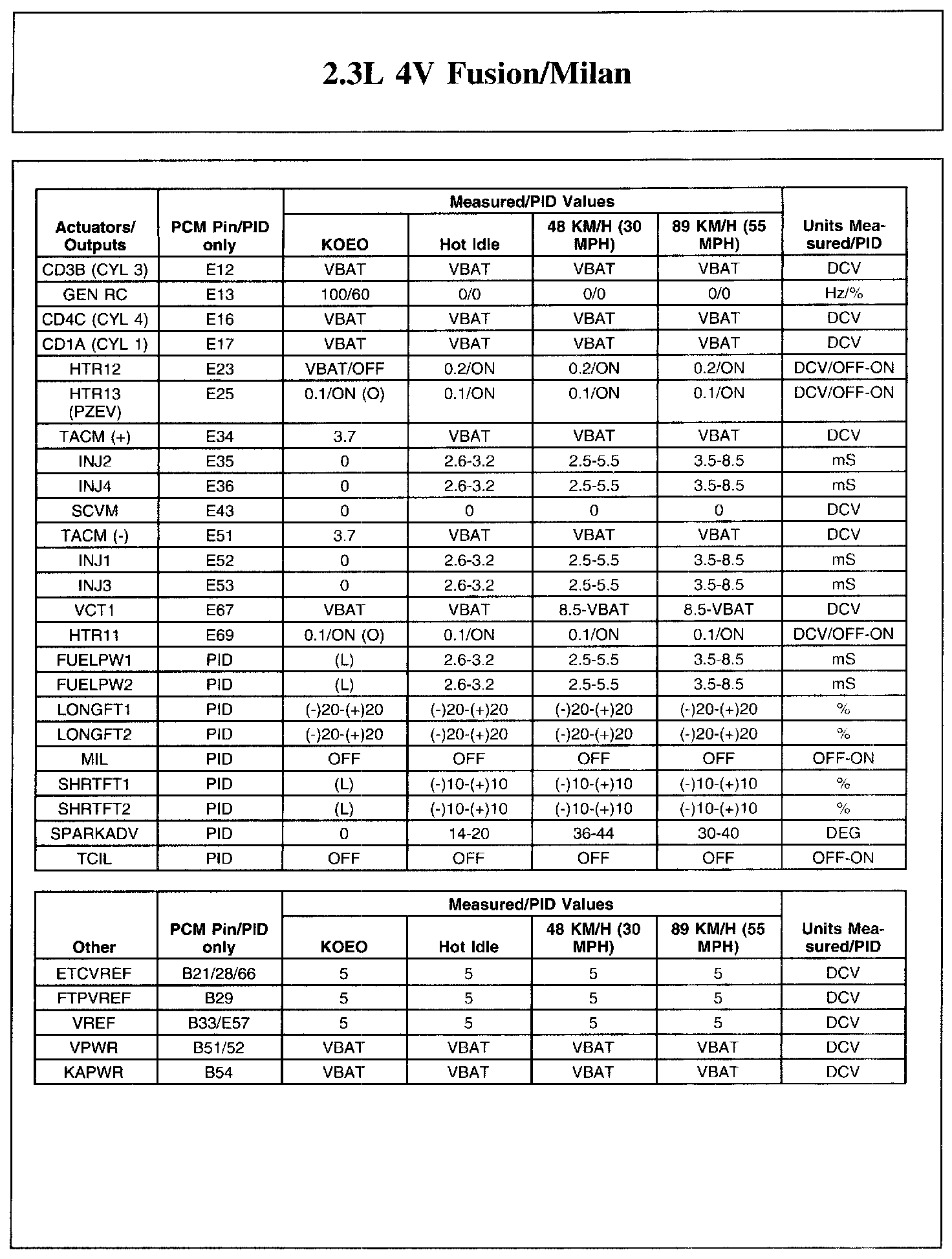 The Typical Diagnostic Reference Value Charts do not display fault parameter identifications (PIDs). These are PIDs which indicate a hard fault with the circuit. They display a value of YES or NO and are PIDs ending with the letter F.
