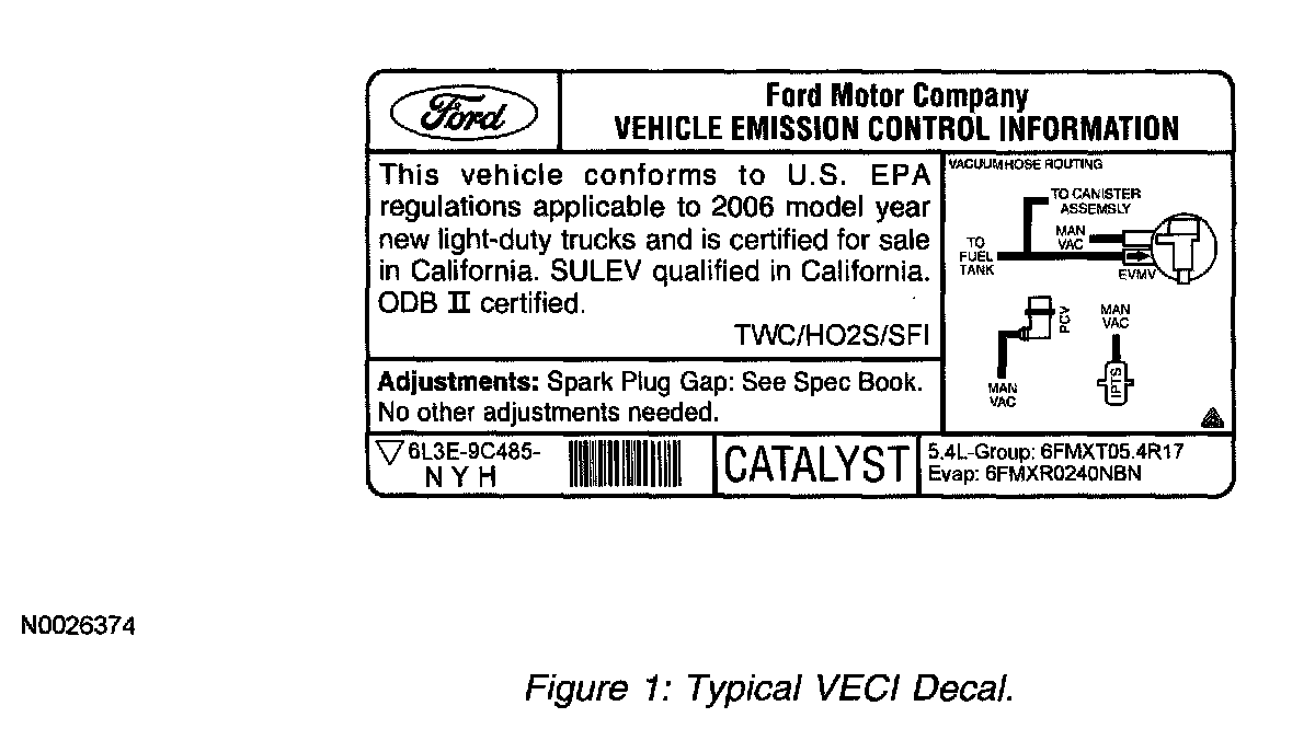 VEHICLE EMISSION CONTROL INFORMATION (VECI)VECI Decal