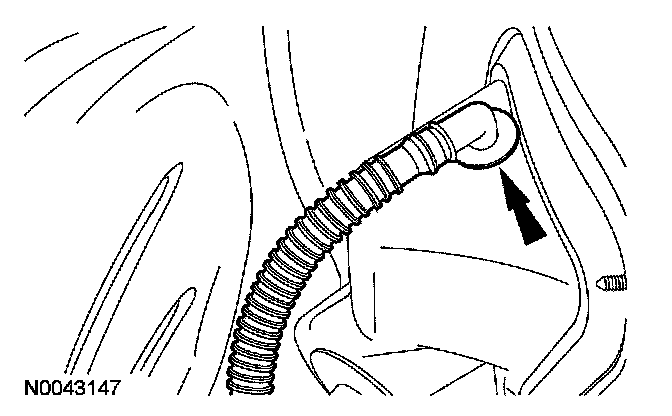 7. Remove the fuel tank filler pipe vapor tube from the fuel door pocket.