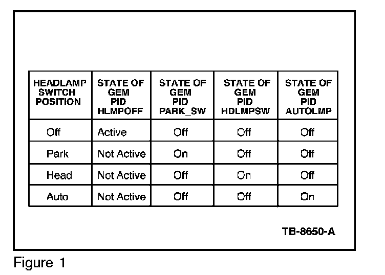 The SJB / GEM receives command signals directly from the headlamp switch. The positions of the headlamp switch that drive input signals to the SJB / GEM, are Off, Park Lamps, and Headlamps (and Auto Lamps, as an option).