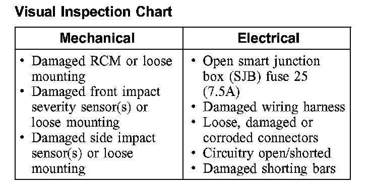 2. Visually inspect for obvious signs of mechanical and electrical damage using the chart.
