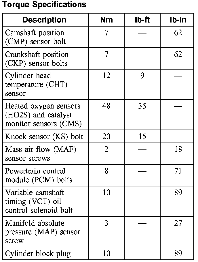 Torque Specifications: