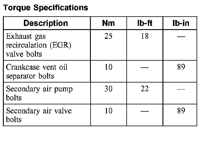 Torque Specifications: