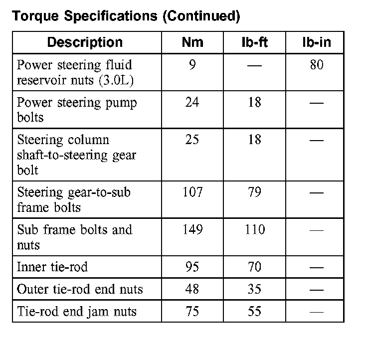 Torque Specifications: