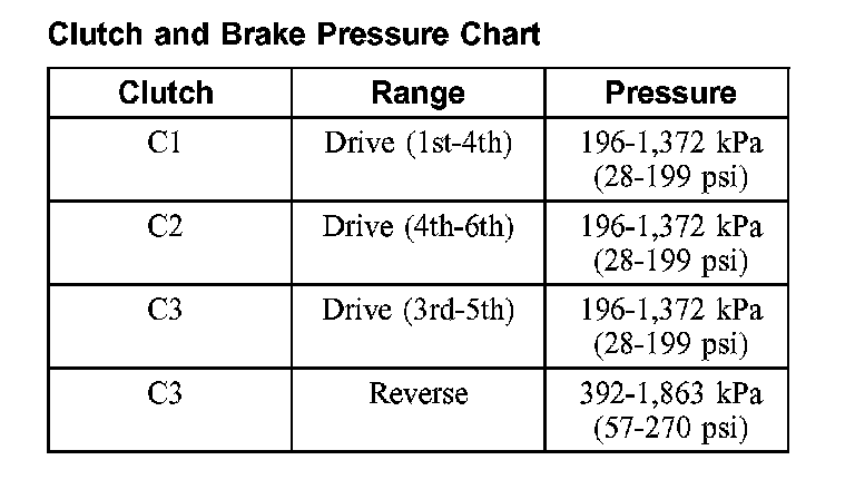 Clutch and Brake Pressure Chart: