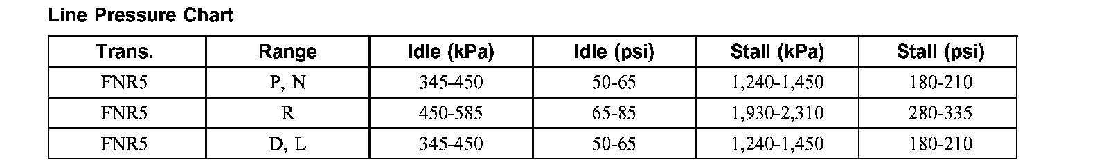 Line Pressure Chart: