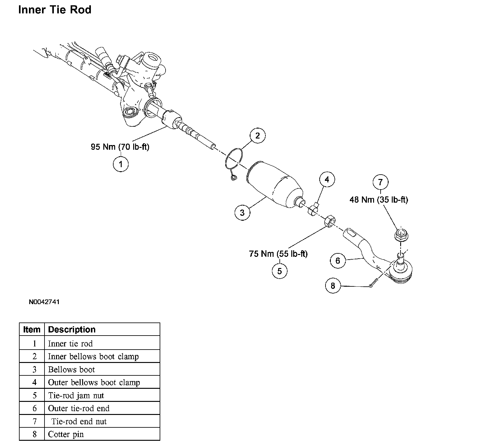 6. Using a suitable wrench, remove the inner tie-rod end.