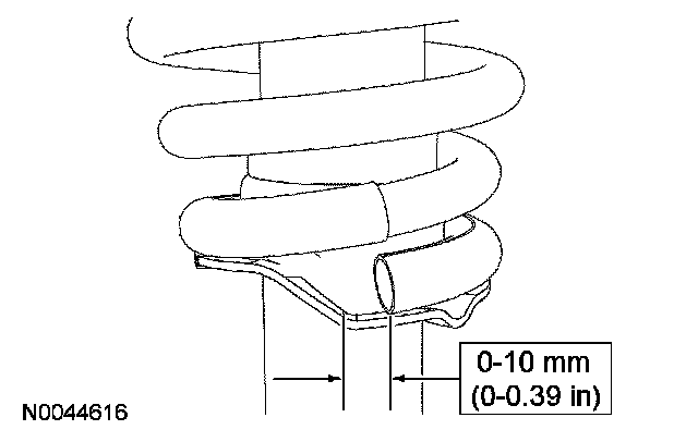 11. NOTE: Before tightening the shock absorber rod nut, position the end of the spring within 0 - 10 mm (0 - 0.39 inch) of the step on the spring mount.